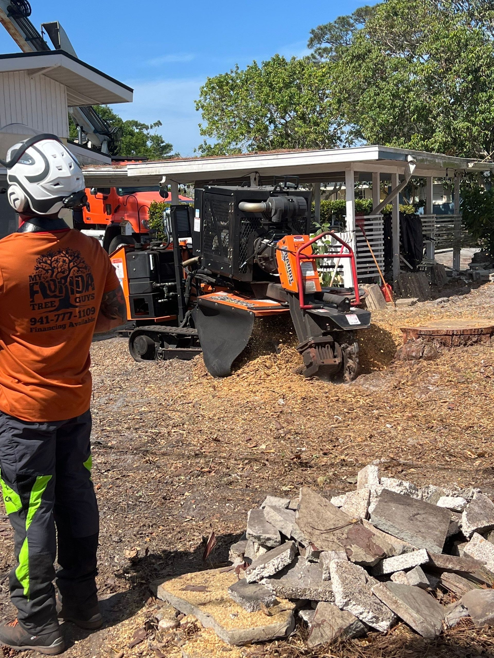 Transform your outdoor space with My Florida Tree Guys' professional stump grinding services in Sarasota and Manatee counties. We're here to eliminate those unsightly tree remnants that detract from your property's beauty and pose potential hazards.
